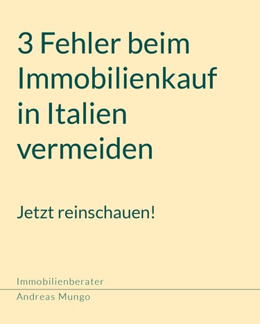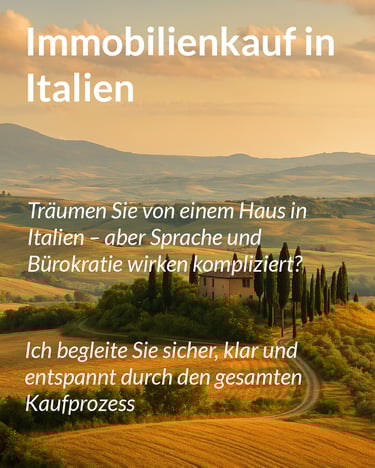 Ich begleite deutschsprachige Käufer beim Immobilienkauf in Italien mit fachlicher Kompetenz, klarer Struktur und persönlicher Verantwortung. Als unabhängiger Ansprechpartner stehe ich ausschließlich auf der Seite des Käufers und sorge für einen transparenten und sicheren Kaufprozess.
